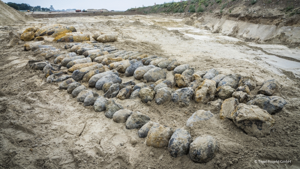 Seit Mai 2021 führt die Tegel Projekt GmbH Kampfmittelräumungen im Osten des früheren Flughafens Berlin-Tegel durch, um die Entwicklung des neuen Schumacher Quartiers vorzubereiten. In den letzten Tagen konnten die Experten des Räumdienstes einen Großfund bergen: 61 bleiummantelte Artillerie-Granaten aus der Zeit zwischen 1875 und 1905, darunter