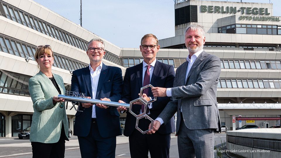 Berlin, 5. August 2021 – Im Rahmen einer symbolischen Schlüsselübergabe hat der Regierende Bürgermeister von Berlin, Michael Müller, heute das Areal des ehemaligen Flughafens Tegel an die Tegel Projekt GmbH übergeben. Die Entwicklung der Nachnutzungsvorhaben, Berlin TXL–The Urban Tech Republic & Schumacher Quartier, kann beginnen. Eines der