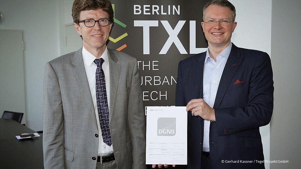 Berlin TXL weltweit erstes Gewerbequartier, das mit “Platin“ ausgezeichnet wurde Bisher gibt es bundesweit nur drei Pilotprojekte, die nach dem DGNB-Nutzungsprofil “Neubau Gewerbequartiere“ vorzertifiziert wurden. Berlin TXL – The Urban Tech Republic ist nun das weltweit erste Gewerbequartier, das mit “Platin“ ausgezeichnet wurde. Das Zertifizierungssystem der Deutschen